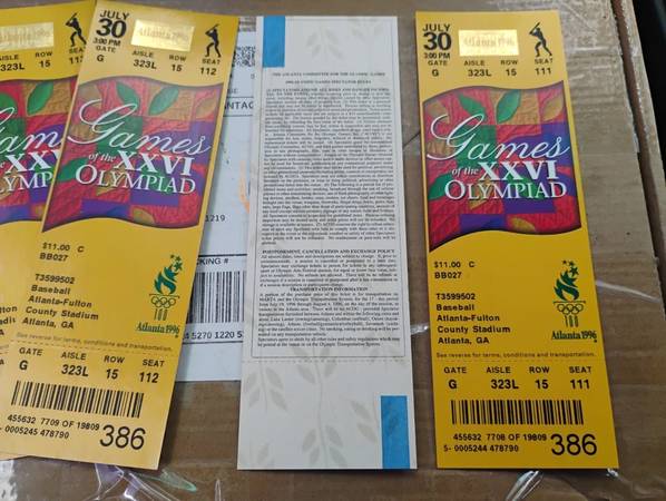 Rare Games Of The XXVI Olympiad 1996 Atlanta Georgia Fulton County Stadium Olympics Unused Vintage Olympic Baseball Tickets Lot Of "5".