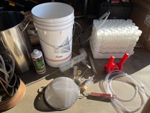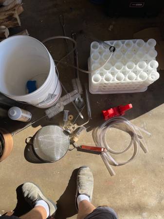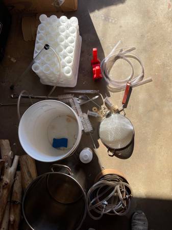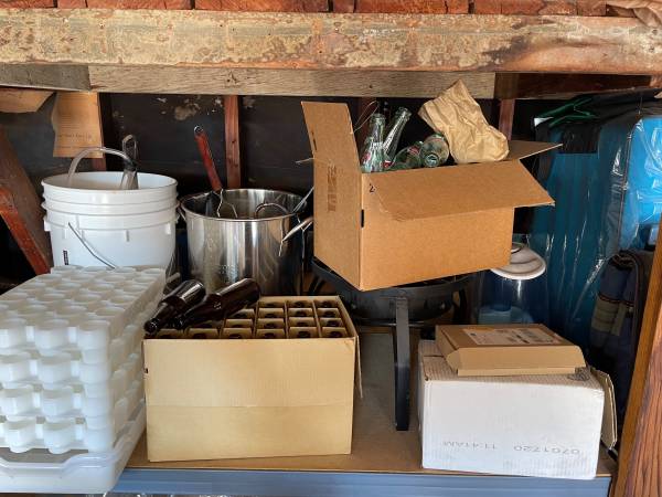 The description and photos do not do this justice. I did not want to pull it out in its entirety for photos. By purchasing this setup, you can produce 2 batches at a time, with no additional purchases except the grains sugars, and expendable items. Only one item was separated from the Brew Supply and it was a bottle capper for $20.00 on amazon. since there are 4 carboys, you can technically run 2 batches in primary fermentation while running 2 batches in secondary, for a total of 8 - 16 cases of beer in a 3 week period. I am also selling a wine refrigerator in a separate listing. which was used to contain hops, grains and other.
