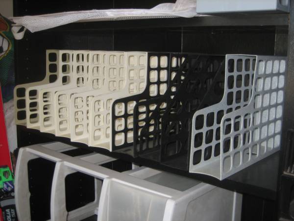 Office desk items. I have a metal tray that fits in a desk drawer, to sort your paper types. I also have several monitor/printer stands. I also have some staplers, etc. I will sell any of the items for about half of what they cost in an office supply store. I also have a drafting pencil pointer, a tape dispenser, a pencil/pen holder, scissors and a desk top-drawer organizer. I also have cardboard file boxes, for $2 each (small ones) and $3 each for long ones. I also have a rubber cord protector (use it to run an extension cord safely where it will be stepped on). It is six feet long. It sells for $21.52 at the office supply store. I will sell it for $14. I also have many three-hole binders available. Many of them have only been used once, for a court case. The newer ones sell at the office supply store for $17 each. I will sell them for $13 each. The various older ones will sell for $3-$4 each. I have a large supply of legal size and standard size Pendaflex hanging files. I also have a large amount of various type manila folders. There are several colors available. Some of them have metal paper holders, for the documents.