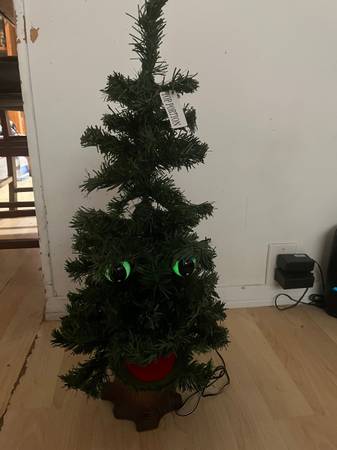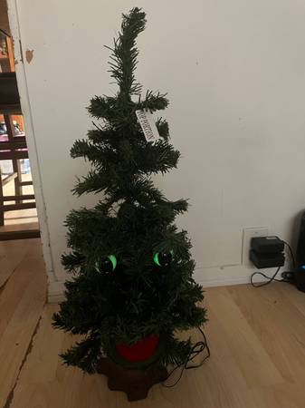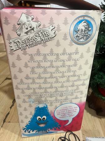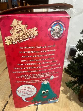 Tested and working conditions. It comes with original box. Power cord adapter. One extra bulb. The lights up in the eye and mouth move and he sings different songs when you walk by him. Cassette...