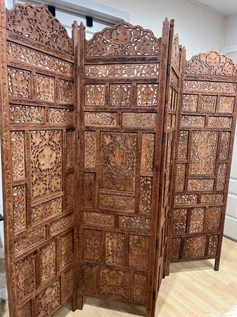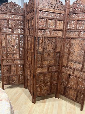 Antique Room Dividers 4- panels. Dimensións 80” L x 72” T. 20” Long each panel. Solid and heavy wood.