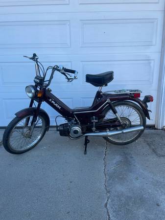 1978 pedal start Puch Maxi moped. This moped will need to be gone through and tuned up. Has been sitting in a garage for about 5 years .