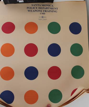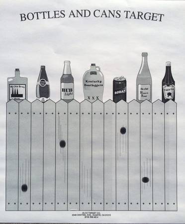 20 Shooting Range Paper Poster Target Practice Bottles Cans Body Includes: 5 Santa Monica Polkadots (1 torn 2" near the top) 10 orange body 5 Alco Bottles and Cans They are rolled up not folded, so...
