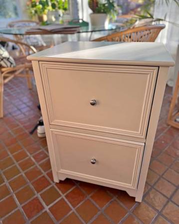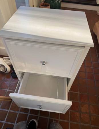 White wood (composite) simple clean lines filing cabinet. Two drawer. W 20.5 H 29 D 16