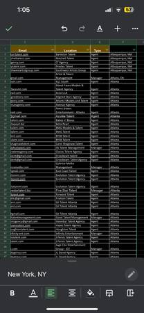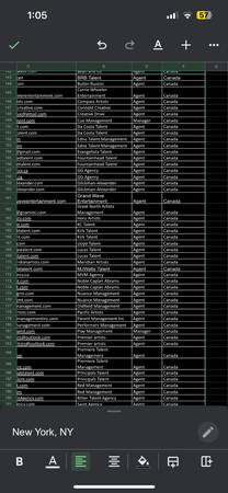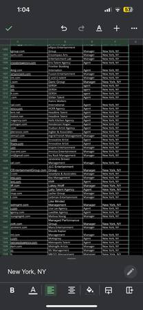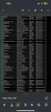 I’ve taken years to develop this list! Approx 100 or so will likely not work or agents that moved on just fyi. That’s expected. But this is PURE GOLD. Bypass workshops and bs pay to play. (If you’re good. They’ll reply). If not, keep at it. “Be so good they can’t ignore you” -Steve Martin