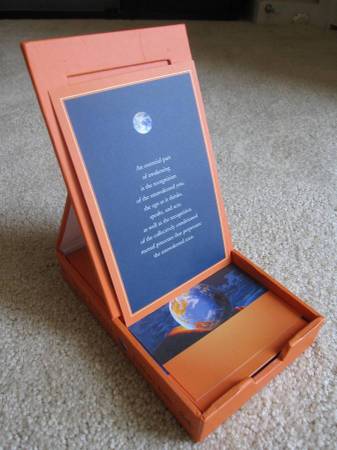 In this new set, the wisdom of the bestselling book "A New Earth" is displayed into short, carefully chosen passages for contemplation and inspiration. The box includes a prop-up frame that allows you to display a favorite card or a rotation of cards for ongoing, deeper reflection.