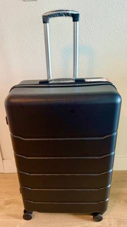 Brand new Large black hardshell suitcase with combination lock, swivel wheels