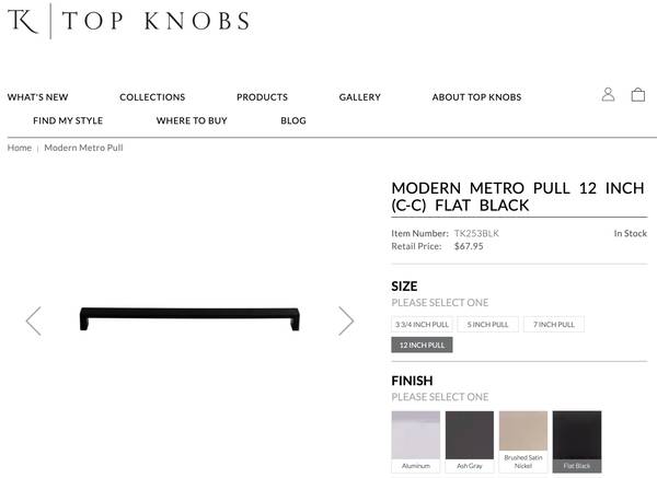 - Top Knobs 'Modern Metro Pull' - 12" - Model# TK253BLK (Flat Black) - Brand new in box; leftover from an installation $35 or better offer