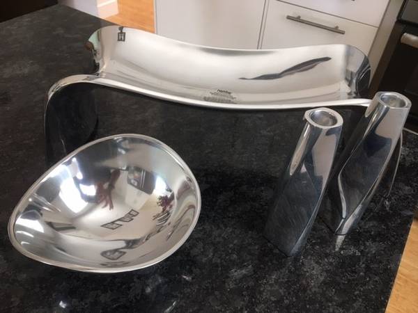 Nambe Candle Holders, Bowl & Tray. $50 for all items pictured.