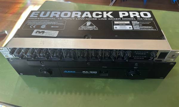 Eurorack pro RX 1602 Alesia RA-100 amplifier $115 Some esthetic blemishes Power cables 2 - 6.35mm cables 1 - 6.35 mm to 3.5 mm 4 - 6.35 mm to RCA