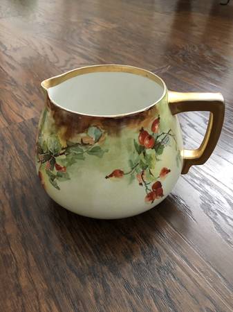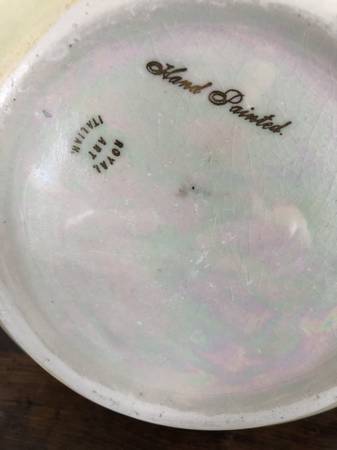 VintagePitcher - Hand Painted - Gold Rim and Handle. Marked...Hand painted Royal Art Italian Great condition! Clean! No chips or cracks! 6 " tall Cash Only! To see more of our posts, copy and paste...