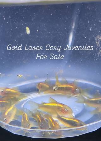 Group of 6 Juvenile Gold Laser Corydoras. Cash pick up in Torrance near the DMV. Also have Red, Blue, Yellow, Green and Snowball Neocaridinas, Amano Shrimps, Blue Star & Silverado Endlers, Gold...
