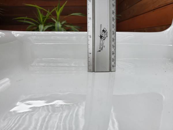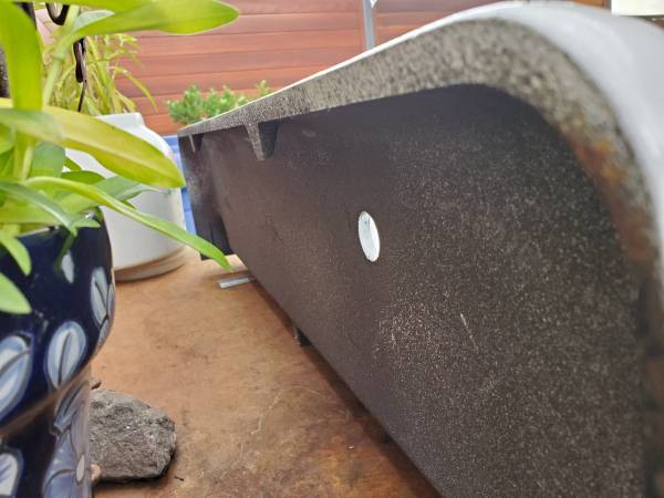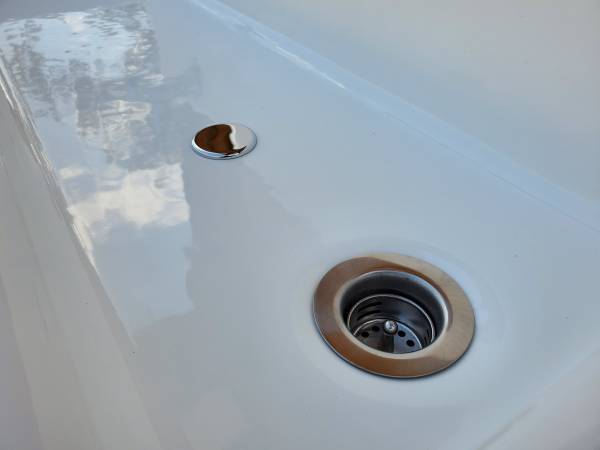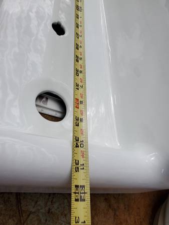 There is a second 1" hole in the basin near the drain, which was likely used for a school drinking fountain bubbler.