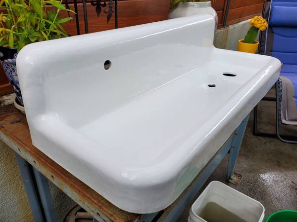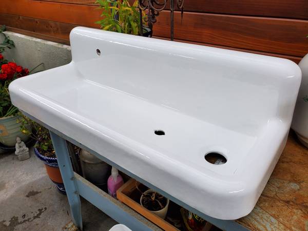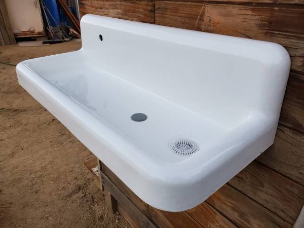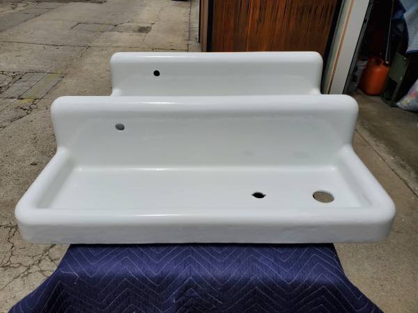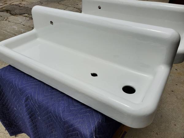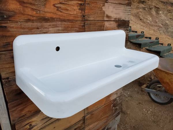 Vintage 36" Haws Cast Iron High Back Sinks - Mid-Century Schoolhouse Style