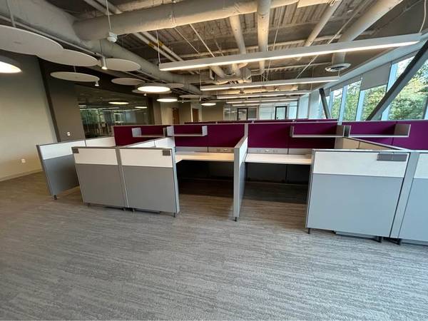 We have 50+ nice Herman Miller 6'x6' cubicles available. All in good-excellent condition. Two tone gray & blue fabric. Includes one file & overhead storage shelf.