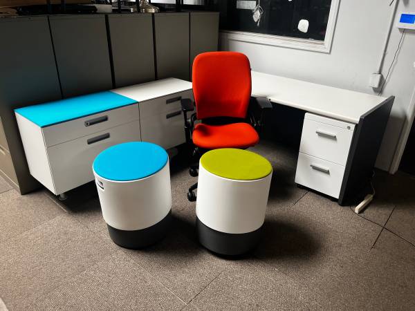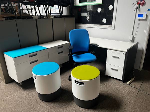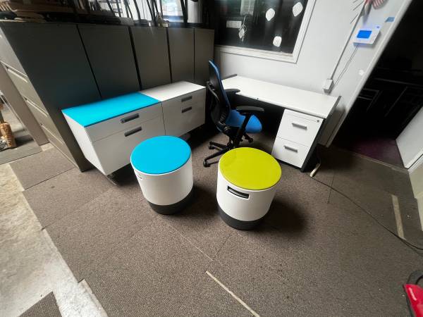 This is a steelcase desk with metal legs and formica top. We have a matching pedestal and Byuo all made by steelcase. If you would like to match the office chair. Steelcase desk $150 Byuo $129...