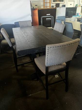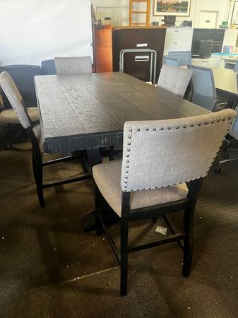 This is a 72" dining table be 36" counter height table. This dining table comes with 4 chairs. We carry all types of used and new office furniture. Delivery is also available for a reasonable fee....
