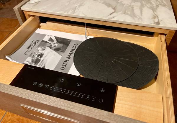 Sleek and space-saving, this all-in-one Invisacook induction cooktop is seamlessly integrated beneath a premium natural Calacatta stone surface—offering the perfect blend of elegance and innovation. The unit includes a high-end soft-close cabinet base with minimalist built-in handles for a modern, streamlined aesthetic. Ideal for contemporary kitchens or compact living spaces, it delivers high-performance cooking without compromising style. Brand New.