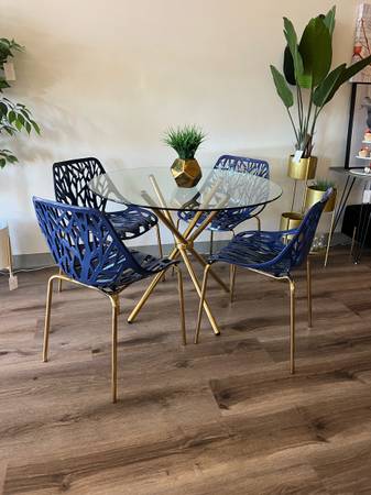 Blue gold glass dining set - furniture - by owner - sale - craigslist
