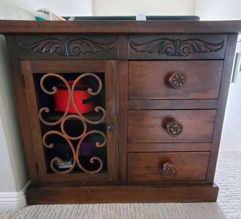 Got this at an antique boutique shop. No longer has the room for it. Real wood.