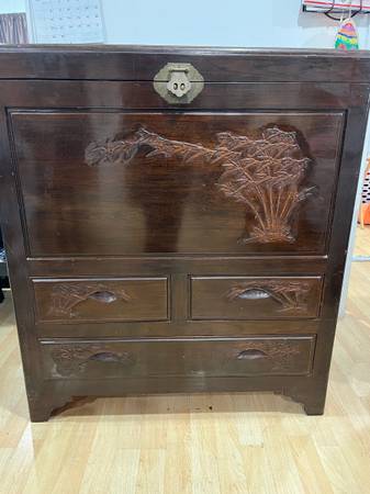Measures is 40” L x 21” W x 45” H. Solid and heavy wood.