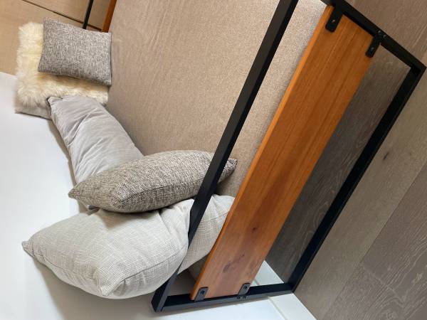 A very useful sturdy daybed with steel frame with solid pine accent. Custom covered mattress included. Dimensions: 78"l x 39"w x 25.8"h