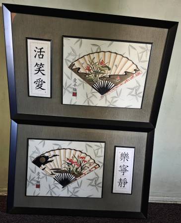 - Japanese Fan with Nature Scenes (2), 20" x 30" [Live, Love Laugh and Happiness, Serenity