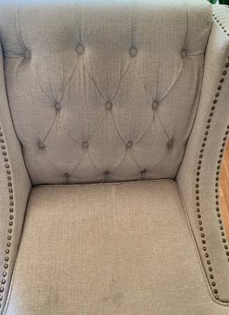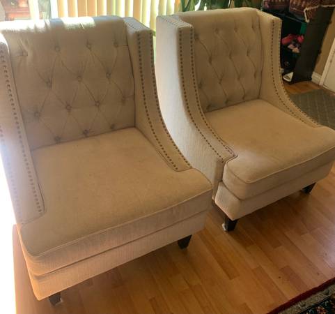 In okay condition Very comfortable Each chair is Approximately 30 inches wide and 33 inches front to back
