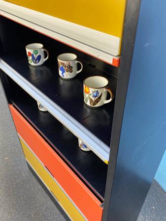 1970's TAB 6 door lateral file. 13.5"x36"x78.5"h. Doors all function well. Shelf interior dimensions are 12.25"x34"x10.5"h. Doors are very clean but metal frame shows wear. Comes with anchor holes already drilled. Great for the office, art studio, or even the kitchen as a pantry. Great colors!!