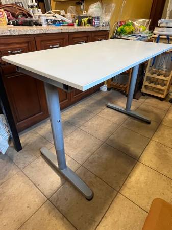 A great table to have in your home or workshop! Great for just about any project in the kitchen, office, garage or wherever. 47” long x 24” wide; adjusts from about 29” tall up to 42”. Solid, sturdy and in nice shape (just 1 slight blemish smaller than the tip of your pinky that’s been touched up). $120. Can deliver nearby for extra fee. Mid City LA near Fairfax and Pico Streets. Contact outdoorslew at gee male or call 310-seven seven zero-7962.