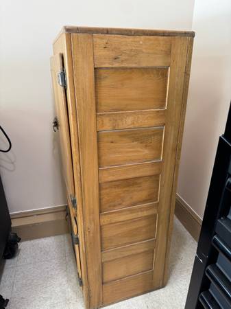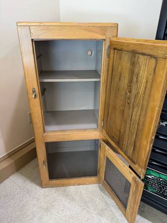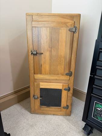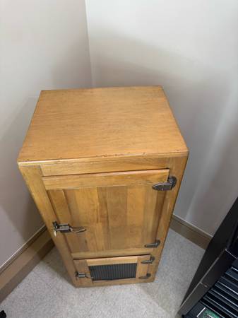 Originally used to store ice before electric refrigerators, this solid and well-preserved piece can now serve as a unique liquor cabinet, display cabinet, or conversation piece in your home, bar, or office.
