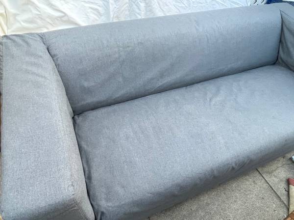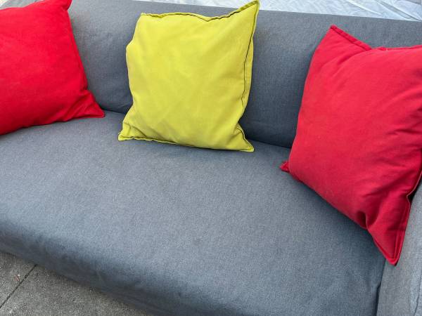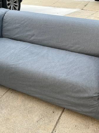 Medium size lovely couch or love seat sofa in nice condition. Comfortable and clean. It’s easy to clean as the durable couch cover can be entirely removed. Neutral grey color goes with just about any décor. 70” long x 33” deep x 36” tall. $185. Can deliver nearby for a fee. Mid City LA near Fairfax and Pico Streets. Contact outdoorslew at gee male or call 310-seven seven zero-7962. Click on “More ads by this user" link to view all my high-quality furniture.