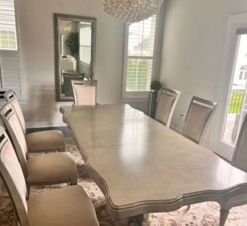 Miramar Double Pedestal Dining Table With 6 Side Chairs and 2 Arm Chairs, Metallic Grey - 2000 $