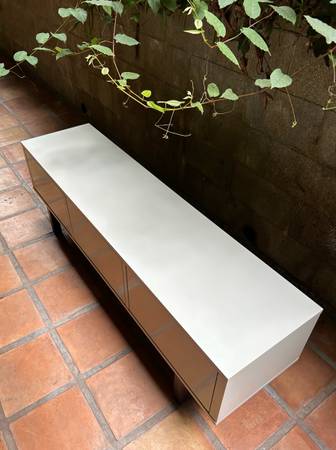 Super cute discontinued IKEA Stockholm TV stand / credenza / etc. It’s In overall very very great condition! Has 2 adjustable shelves that can easily be taken out or switched around, whatever. Nice & sleek. Overall a pretty cool guy.