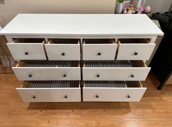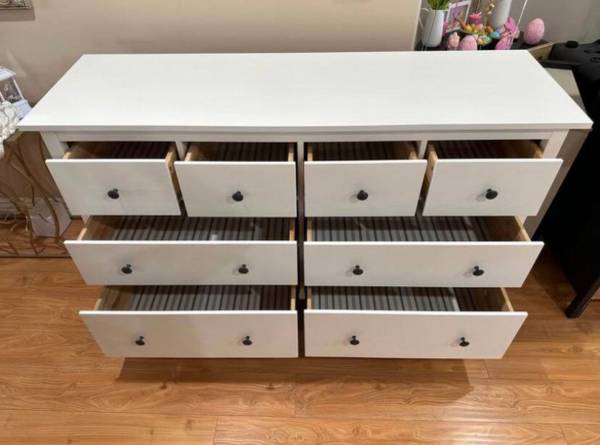 IKEA Hemnes white dresser in great condition and great shape ,no scratches or dent all drawers slide and close perfectly . Width: (63 ") Depth: (19 ") Height: (37 ")