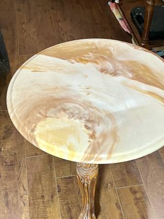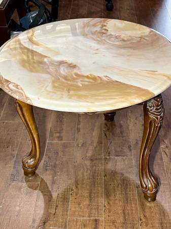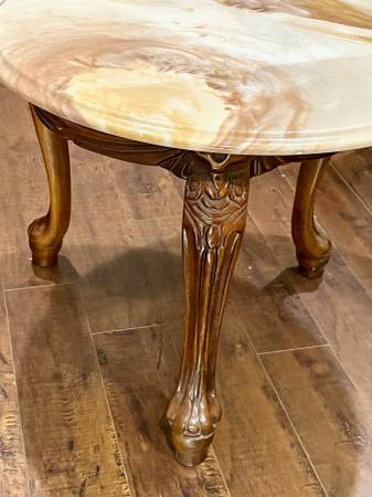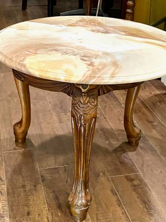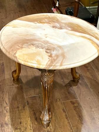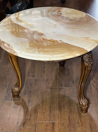 Elegant small end table with classy multi-color marble top made in Italy. 19” high x 25” wide. $95. Mid City LA near Fairfax and Pico Streets. Contact outdoorslew at gee male or call 310-seven seven zero-7962. Click on “More ads by this user" link to view all my high-quality