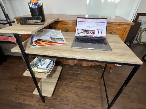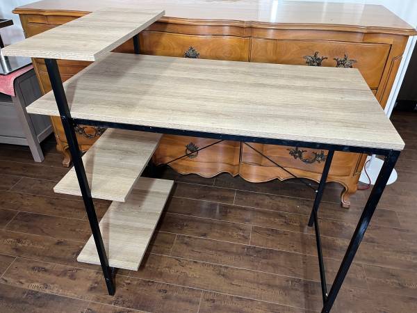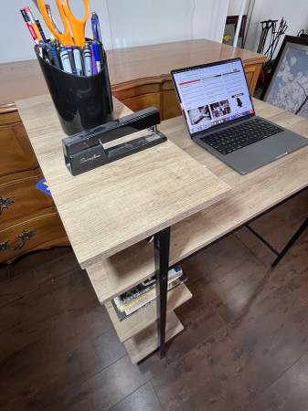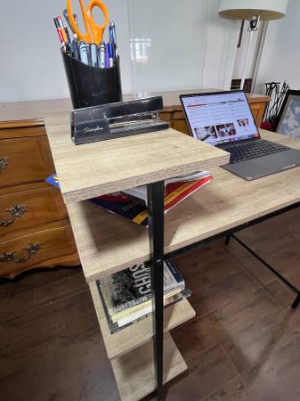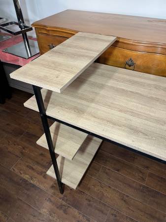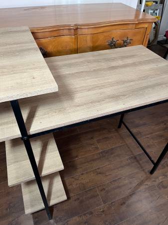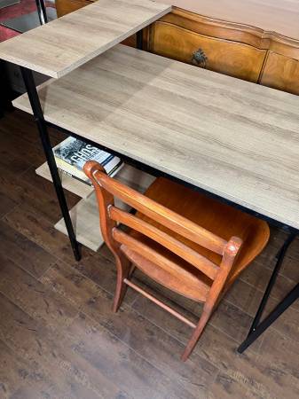 Has a table top work space and 3 other shelves for convenient storage. Ideal for a child or student, or you can even use it as a plant stand and store your gardening tools, etc., on the shelves. 36” long x 20” wide x 36” tall (top shelf) and 30” tall (table top height). $95. Can add brown chair as depicted for $35 so the set total would be $125. In great shape. Can deliver nearby for an extra fee. Mid City LA near Fairfax and Pico Streets. Contact outdoorslew at gee male or call 310-seven seven zero-7962.