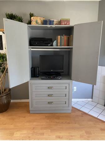 Large armoire 20" deep x 36" wide x 72" high 3 drawers on rollers, in good condition. $80 obo