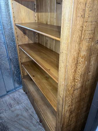 A solid, well-made and great-looking large bookcase! Wood is from South America, ostensibly Brazilian. It’s made to last: strong, sturdy and heavy. 77” tall x 52 wide x 17” deep. Has 5 large shelves; 4 are adjustable with clever wood support bars that easily slip into grooves on sides of bookcase. Also has 2 drawers at bottom for additional storage space. Will last a lifetime and beyond! $395. Can deliver nearby for extra fee. Mid City LA near Fairfax and Pico Streets, 90019. Contact outdoorslew at gee male or call 310-seven seven zero-7962.