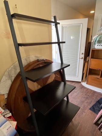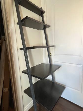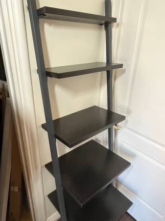 Two sleek leaning ladder bookcases or bookshelves in great shape. Both are 72” tall and 22” wide although one is 22” wide and the other is 30” wide. Easily comes apart with screws if needed for transportation. Can deliver nearby for extra fee. Take the slimmer one for $95 or the wider one for $120 or both for $200. Can deliver nearby for an extra fee. Mid City LA near Fairfax and Pico Streets. Contact outdoorslew at gee male or call 310-seven seven zero-7962.