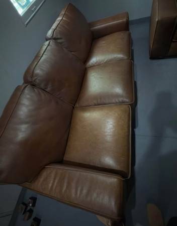 • 5 years old with light surface scratches from normal use and dogs (manufacturer recommends leather cleaner to reduce visibility)