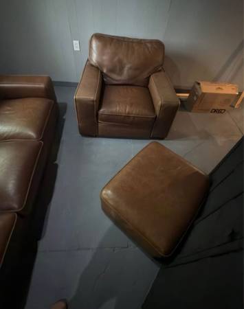 • Sofa is missing legs, but love seat and ottoman are fully intact