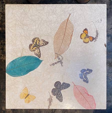 Mid century Biltmore butterfly end table. 15.25”x15.25”x17”h. Laminate butterfly top is in good condition. Wood frame shows some wear. Cool 50’s style. See other items at: Vintagevisions.weebly.com...