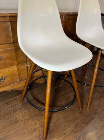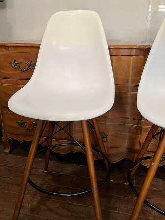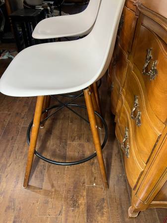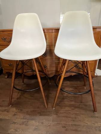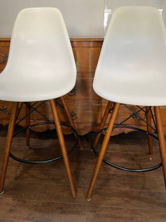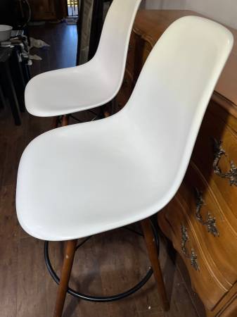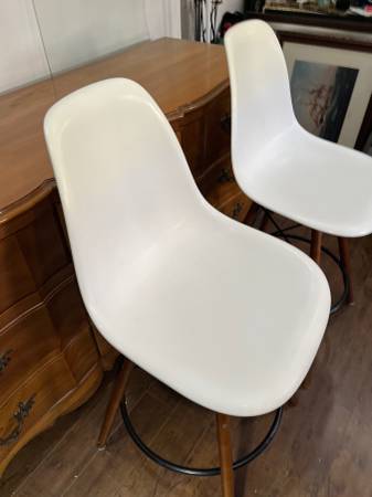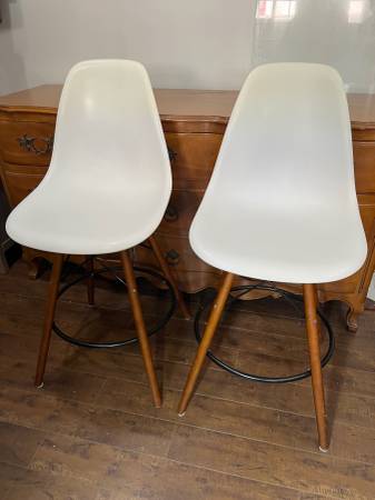 2 cool modern bar stools in excellent condition; they look brand new! Seat is 25” tall x 18” wide. The top of the back is 41” tall. Can deliver nearby for an extra fee. $95. Mid City LA near Fairfax and Pico Streets. Contact outdoorslew at gee male or call 310-seven seven zero-7962.