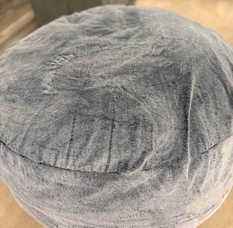 Comfortable soft velvet grey- blue beanbag love it too big for my living room purchased old brick a few months ago