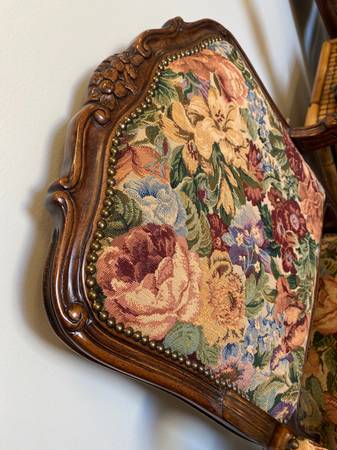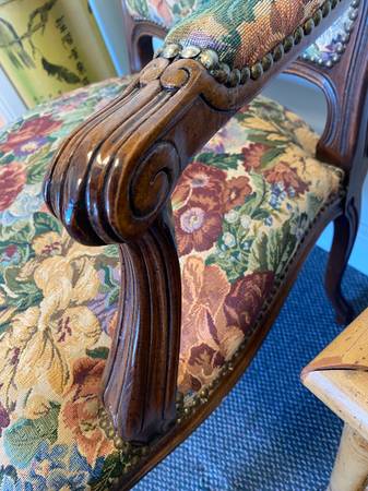 A thing of beauty is a joy forever. This lovely pair of French Provincial armchairs with floral upholstery are exceptionally great pieces of furniture! It is a work of art! It takes you to the countryside to savor the air in lush gardens. At least that's the way I feel around it.