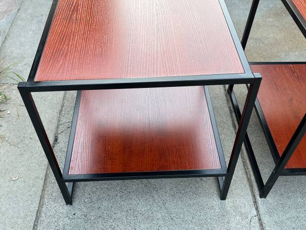 Attractive and functional set of 2 end tables in great shape. Two levels so you have room to store and display various items. 20” x 20” x 20”. $95. Can deliver nearby for a fee. Mid City LA near Fairfax and Pico Streets. Contact outdoorslew at gee male or call 310-seven seven zero-7962.