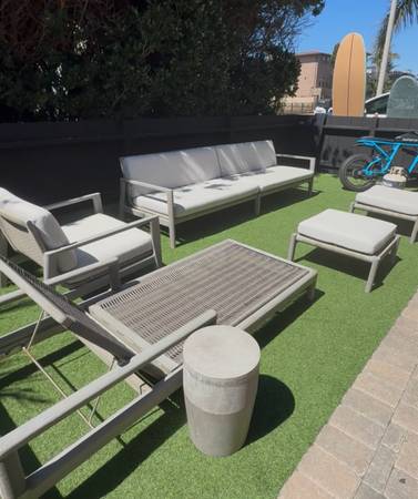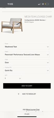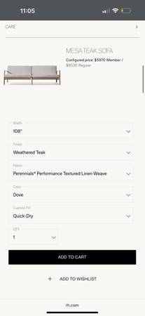 $15k Restoration Hardware Mesa Teak Outdoor Set. •color is weathered teak •Fabric is performance textured linen weave in Dove Few years old in great condition. •Does not include firepit. Sold...