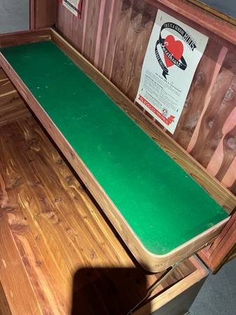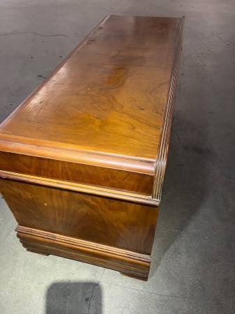 Classic “Sweetheart Chest” made by Roos Furniture Company of Forest Park, Illinois. Solid and sturdy. Spacious interior with convenient storage shelf. Note it has some minor external scratches, a few smudges on top and slight bulging of veneer in one spot. $220. Can deliver nearby for extra fee. Mid City LA near Fairfax and Pico Streets, 90019. Contact outdoorslew at gee male or call 310-seven seven zero-7962.