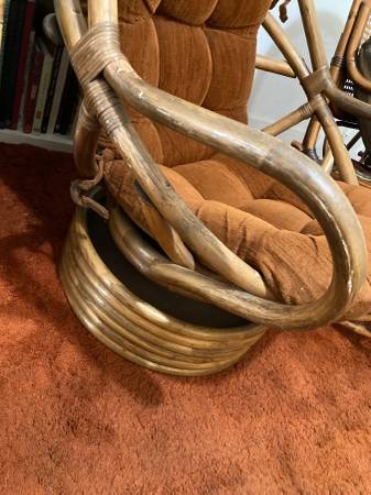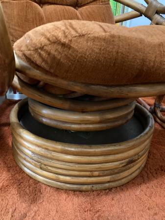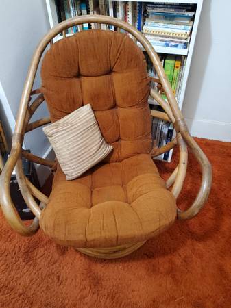 Vintage MCM c.1970s bent rattan swivel lounge rocker